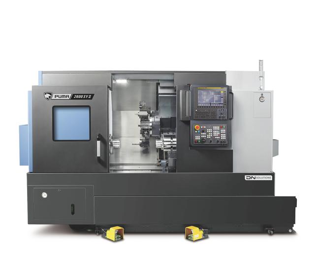 The DN Solutions PUMA 2600SYB II is a high-performance sub-spindle Y-axis turning center designed for complete part machining in a single setup. Its rigid 30° slant-bed design, box-way construction, and Y-axis milling capability eliminate secondary operations, reducing handling time and improving part precision. With FANUC 0i-Plus control, a touchscreen interface, and EZ Guide i conversational programming, this lathe combines heavy-duty performance with user-friendly automation.
