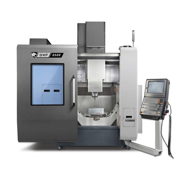 Improve speed and flexibility with the 5-axis DVF Series The DVF Series is the newest line of 5-axis machining centers from DN Solutions (formerly Doosan Machine Tools). Built with cutting-edge technology, ergonomic accessibility, and an automation-ready framework, the DVF delivers excellent performance. The DVF features a combined pivoting and rotary table to provide optimum access to all 5 axis, while maintaining rigid spindle support for reduced vibration.